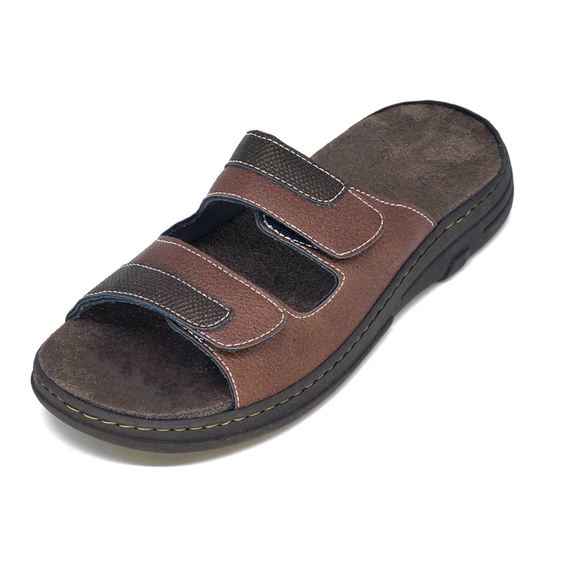 Ανατομικό ανδρικό σανδάλι με ρυθμιζόμενα βέλκρο για να το προσαρμόζεται ακριβώς στο πόδι σας Διαθέτει εξαιρετικά μαλακό ανατομικό δερμάτινο και αποσπώμενο πέλμα Σταθερό και πολύ άνετο σανδάλι για όλες τις ώρες της ημέρας Αποτελείται από μακράς διάρκειας αντιολισθητική σόλα για σχεδόν όλες τις επιφάνειες Φόρμα: κανονική Ελληνικό προϊόν