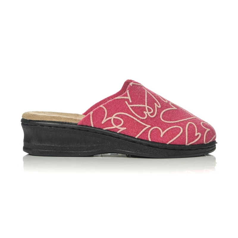 Αναδείξτε την άνεση στο σπίτι σας με αυτή τη γυναικεία παντόφλα σε φούξια, μπλε και μπεζ χρώμα με μοντέρνο σχέδιο καρδιών. Ο ανατομικός σχεδιασμός σε συνδυασμό με τον πάτο memory foam προσφέρει ξεκούραστη εφαρμογή, καθώς προσαρμόζεται στο σχήμα του ποδιού για μέγιστη υποστήριξη και μαλακό πάτημα. Η ελαφριά, αντιολισθητική σόλα χαρίζει σταθερότητα, ενώ το υφασμάτινο επάνω μέρος είναι ευχάριστο και ανθεκτικό.