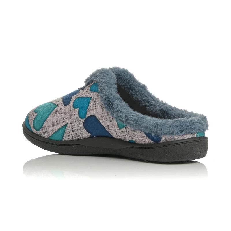 Χαρίστε ζεστασιά και στυλ στα βήματά σας με αυτή τη γυναικεία παντόφλα σε γκρι χρώμα με πολύχρωμα μοτίβα καρδιών και απαλή γούνινη επένδυση. Ο ανατομικός σχεδιασμός της εξασφαλίζει στήριξη και ξεκούραση, ενώ ο αποσπώμενος memory foam πάτος με αντιμικροβιακή προστασία συμβάλλει στην υγιεινή και στη φρεσκάδα της παντόφλας ακόμα και μετά από πολύωρη χρήση.