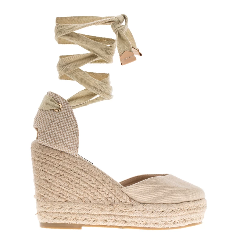 Εντυπωσιακές γυναικείες ανατομικές εσπαντρίγιες με ψηλό τακούνι και δετό κορδόνι στην περιοχή της γάμπας