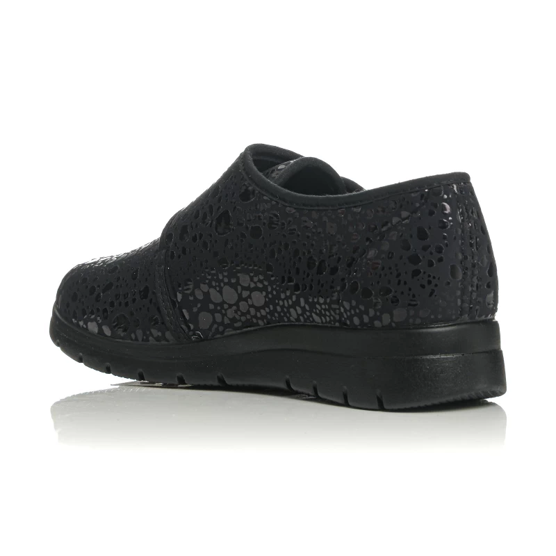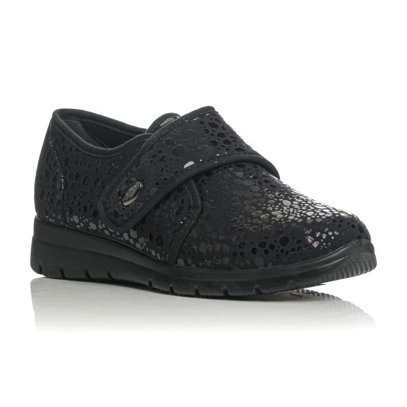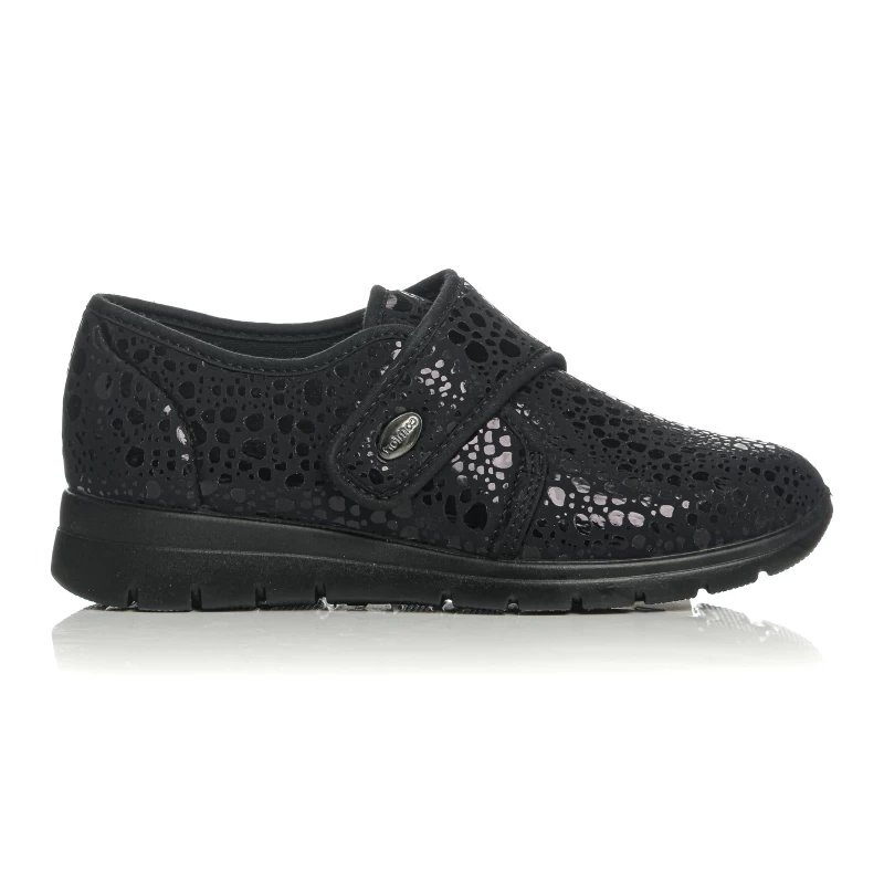 Ανατομικό παπούτσι SUNSHINE σχεδιασμένο για γυναίκες που αντιμετωπίζουν κούραση, πόνους ή δυσμορφίες στα πόδια (π.χ. κότσι, σφυροδακτυλία). Με φαρδιά γραμμή και μαλακό επάνω μέρος που δεν πιέζει τα δάχτυλα, προσφέρει άνεση και ανακούφιση καθ’ όλη τη διάρκεια της ημέρας. Η αυτοκόλλητη ρυθμιζόμενη λωρίδα εξασφαλίζει σταθερή εφαρμογή χωρίς ερεθισμούς, ενώ η ανατομική σόλα μειώνει την καταπόνηση και απορροφά τους κραδασμούς.