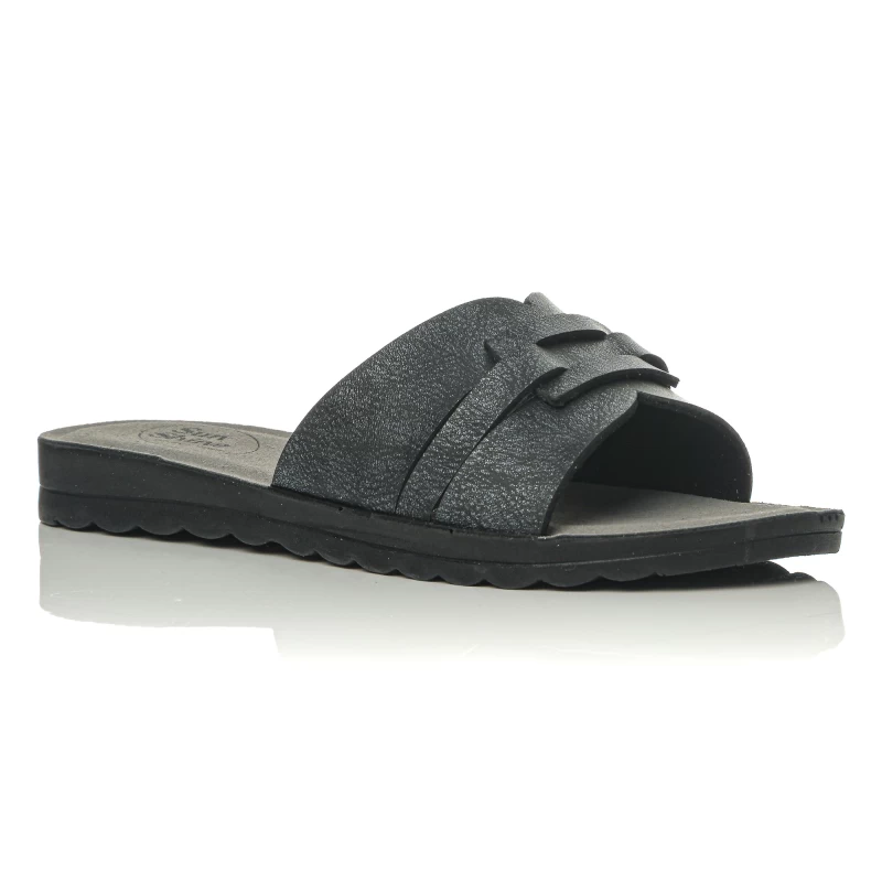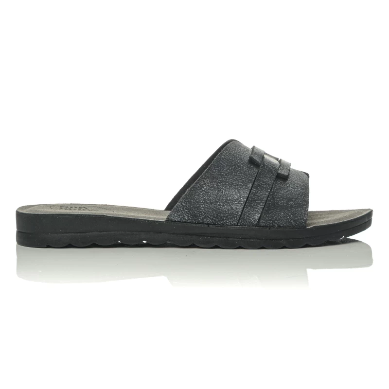 Refresh your summer looks with these elegant flat slides that combine minimal aesthetics and everyday comfort. The wide band on the upper features a discreet cut-out design and layered detail, offering a modern character without exaggeration. The soft, comfortable insole supports the foot throughout the day, while the light and flexible sole ensures a comfortable and stable gait. Ideal for casual outfits, from morning walks to afternoon outings, they are easily combined with jeans, shorts or airy dresses. They are available in timeless shades that match every summer wardrobe.