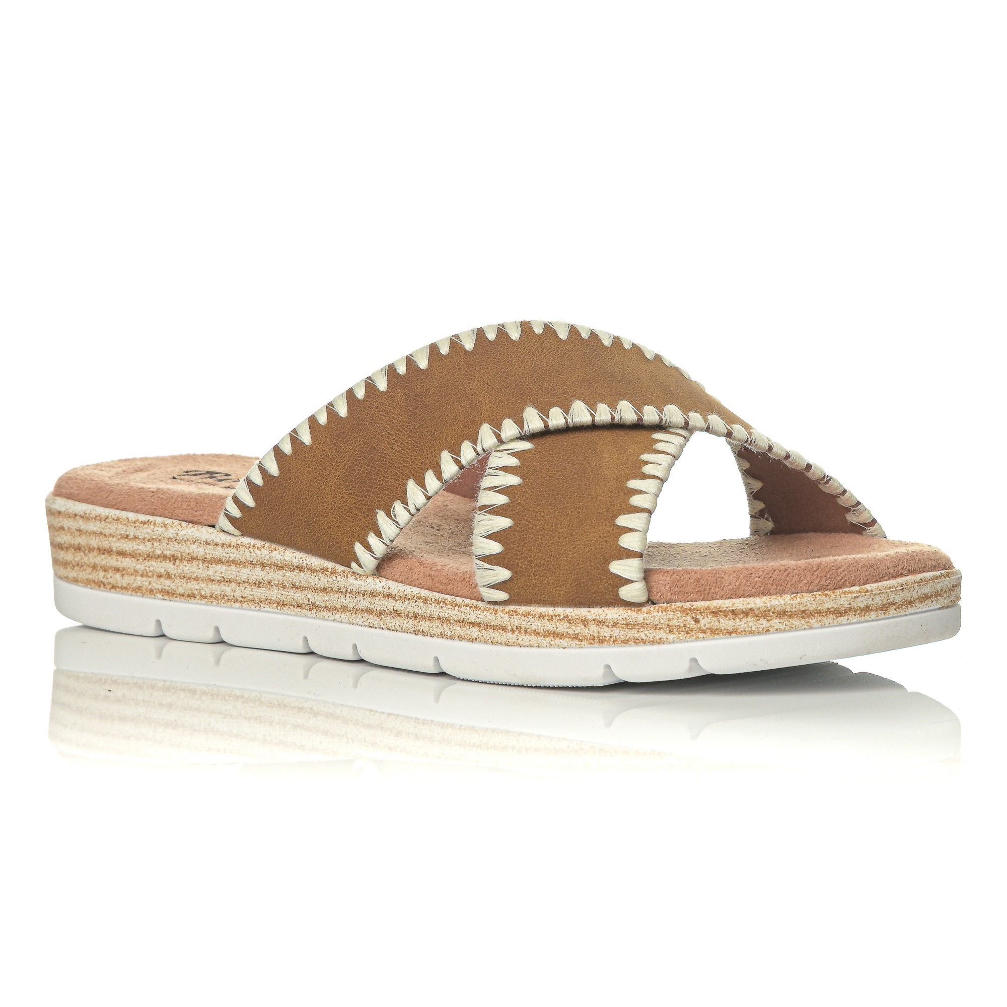 Refresh your summer style with this women's sandal in a cross-body design. The straps gently hug the foot, while the decorative outer sole adds a discreet, handmade aesthetic.