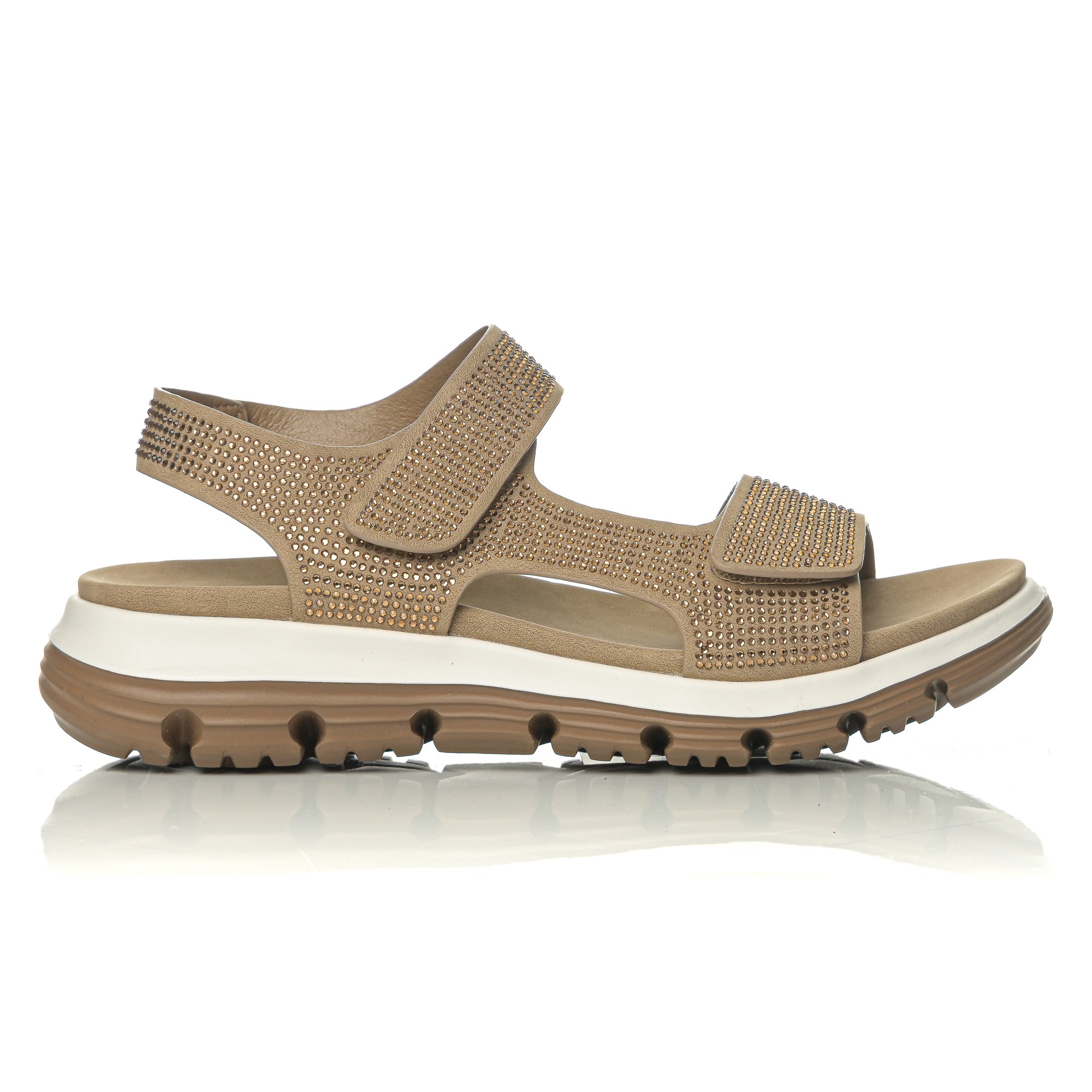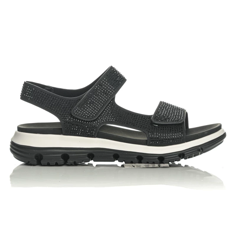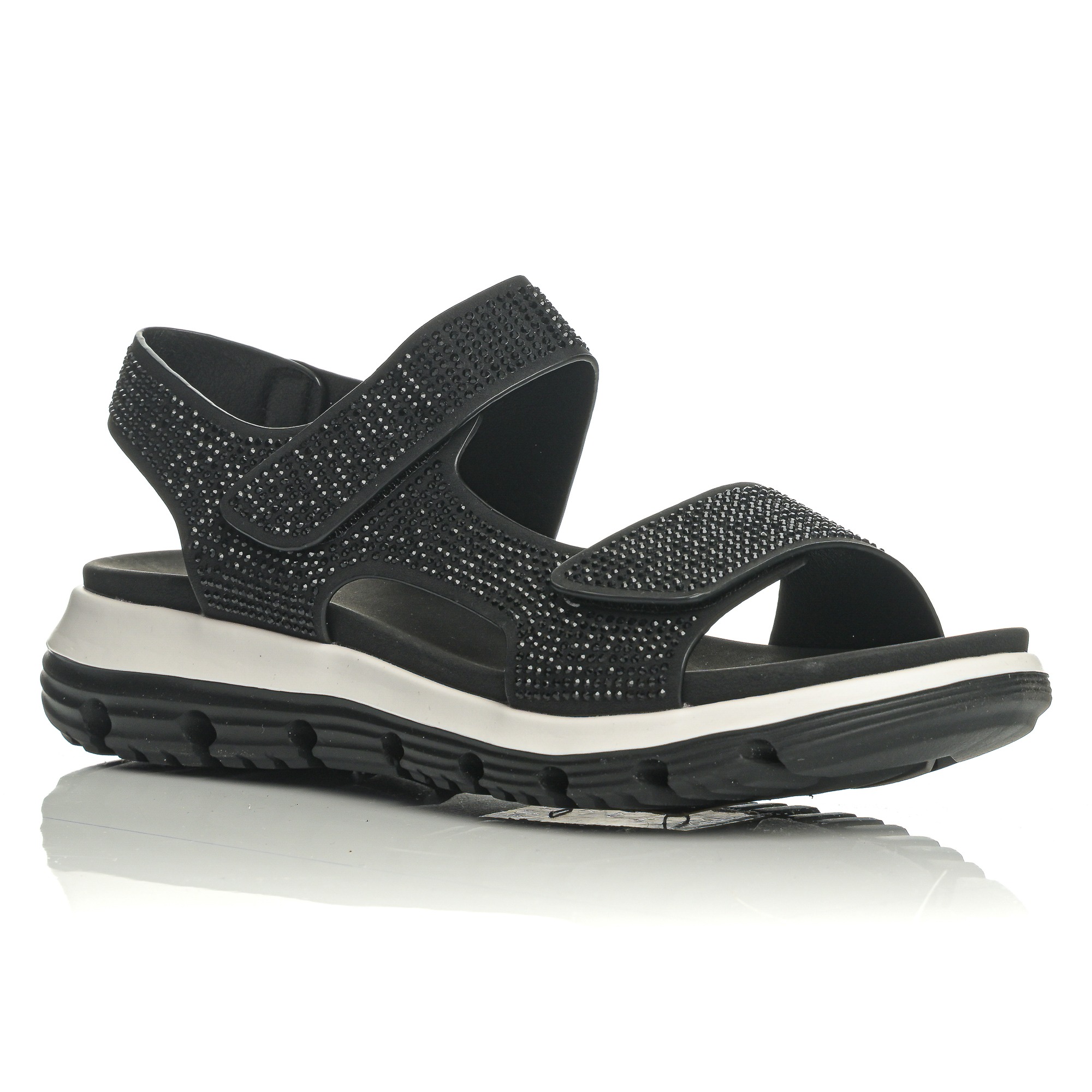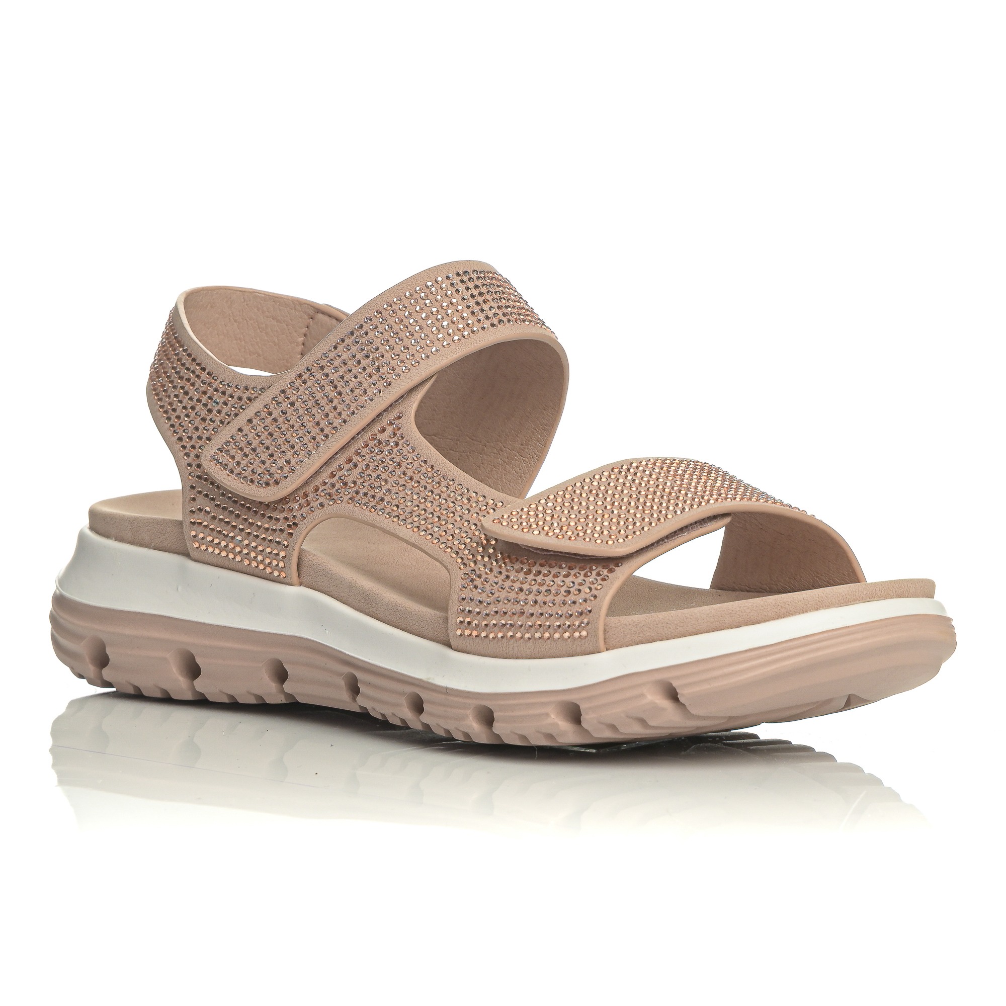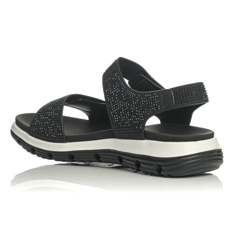 Upgrade your summer looks with this women's sandal that combines comfort and elegant shine. Decorated with impressive rhinestones all over, it gives glam character even to the simplest outfits.