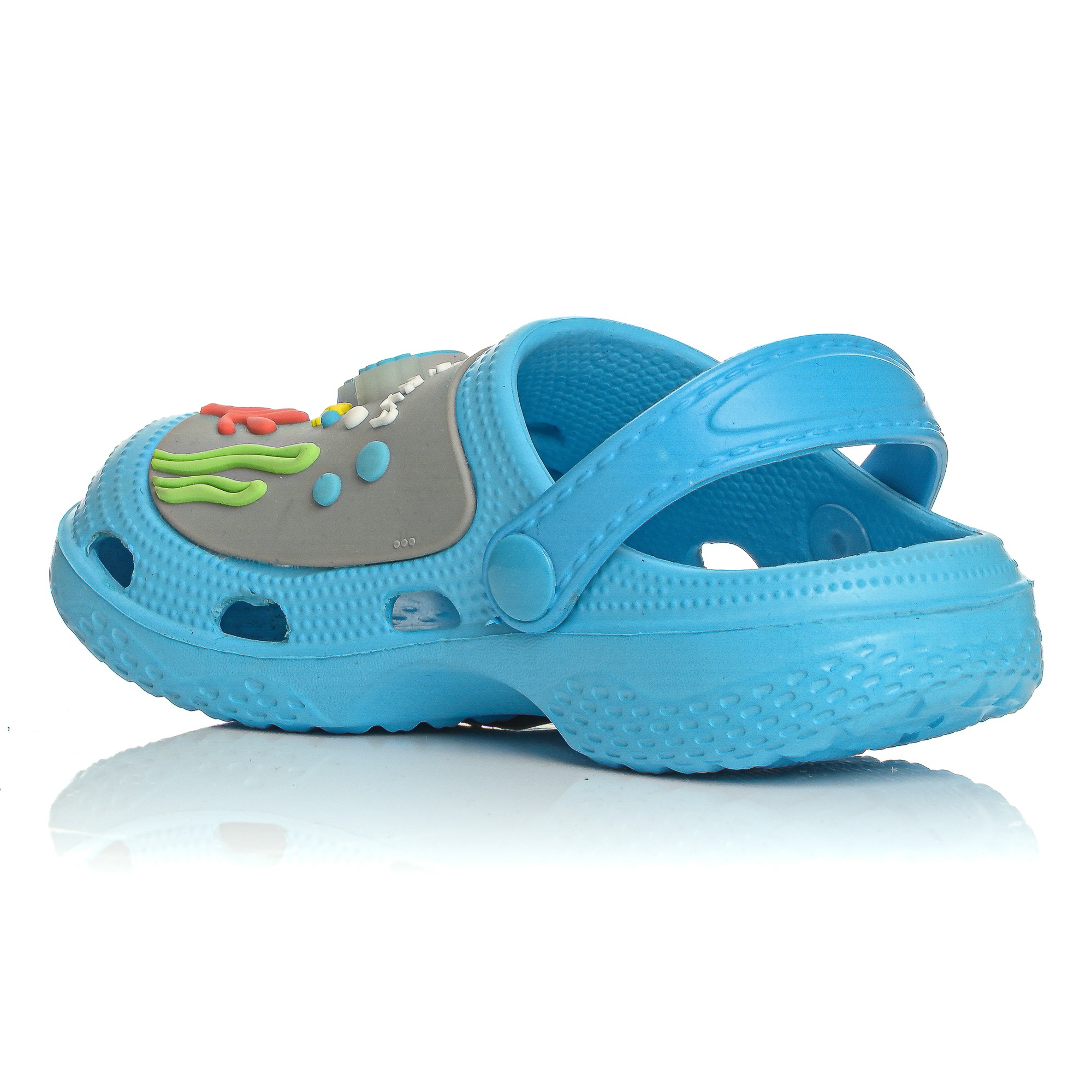 The lightweight and durable construction offers comfort and ease of walking, while the perforated upper allows for proper ventilation and quick drying after water. The adjustable strap at the back ensures a better fit and stability on the child's foot.