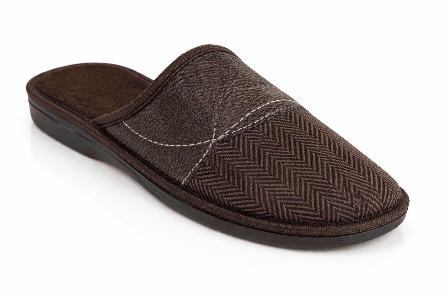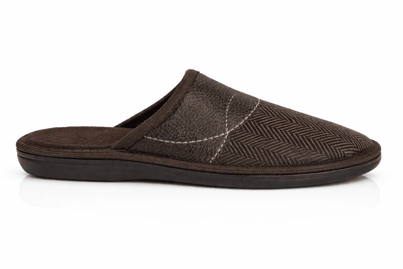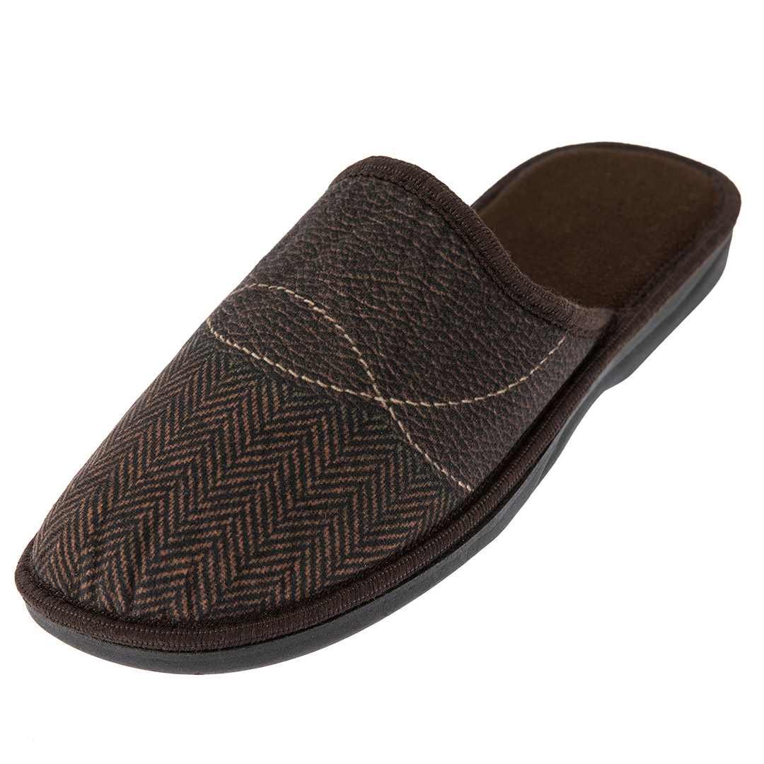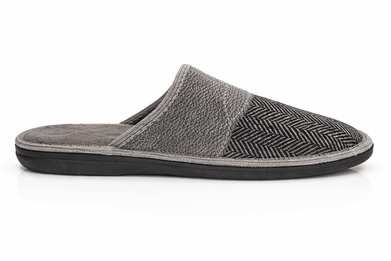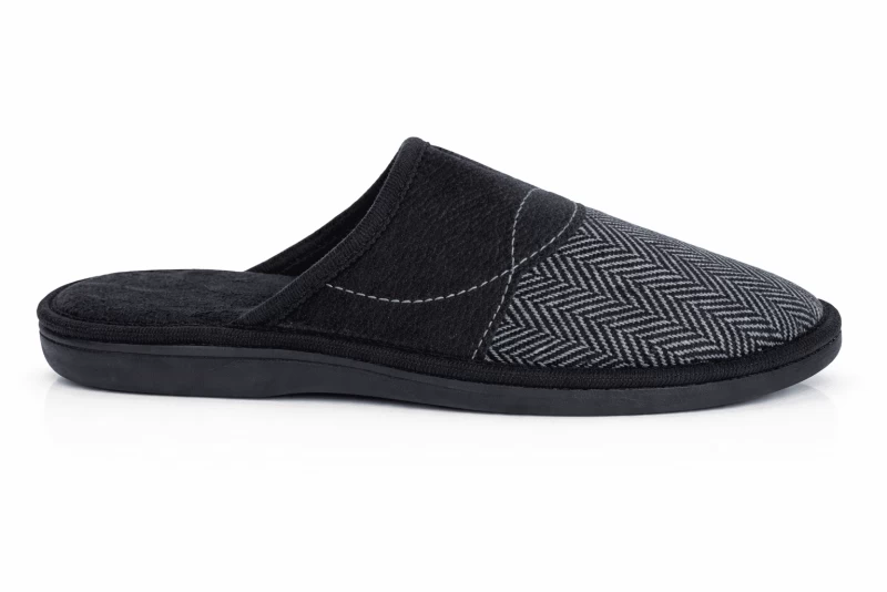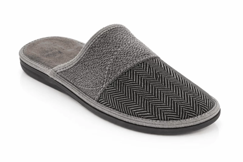 Men's anatomic slippers made of fabric Extremely soft anatomic pad like a pillow Shock-absorbing man-made outsole Long-lasting non-slip sole for almost all surfaces Imported product