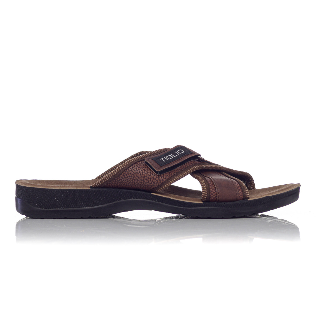 Anatomical men\'s sandal with cross lacing that adapts to the foot