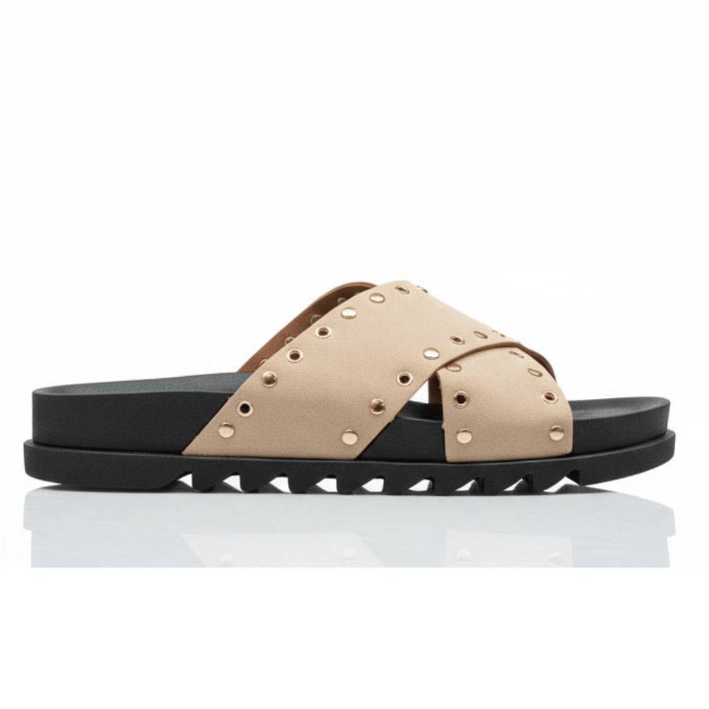 Women's flat sandals of high quality artifficial leather Soft footbed Stable non-slip sole Form: normal Imported